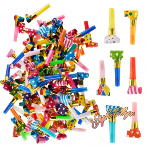 Музыкальная игрушка - язычок-гудок. Игрушка разворачивается при направленном потоке воздуха и издает характерный звук. Продажа от 1 тштуки.