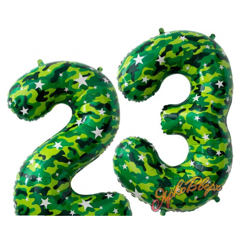 Набор фольгированных воздушных шаров фигура в виде цифры 23 из тонкой полимерной фольгированной пленки, цвет -"Камуфляж". Имеет клапан приспособленный для надувания гелием который после надувания плотно удерживает гелий внутри шара. Ленту к шару привязываю только для того, чтобы шар не улетел. Сдувшийся фольгированный воздушный шар можно поддуть воздухом или гелием и он обретет прежний вид.