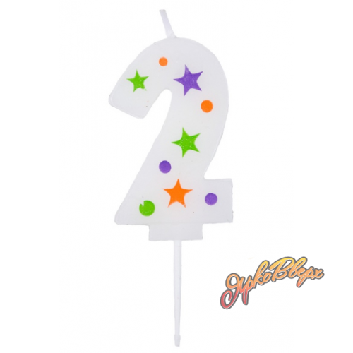 Свеча -цифра "2" Звезды 5см/V