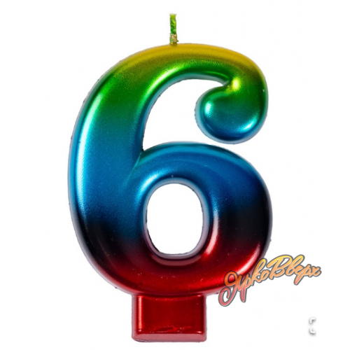 Свеча -цифра "6" Радуга металлик 8см/V
