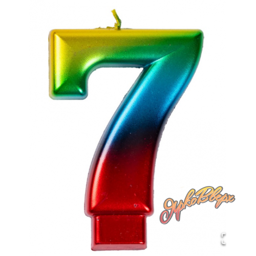 Свеча -цифра "7" Радуга металлик 8см/V