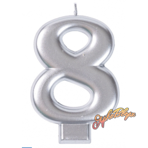 Декоративное украшение стола. Серебряная Свеча в форме цифры "8". Отличное решение для декорирования торта, десерта ко дню рождения или юбилею. Стеарин, оригинальный дизайн. Высота свечи-цифры 8см.