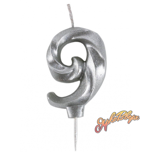 Свеча -цифра "9" витая серебро 5см