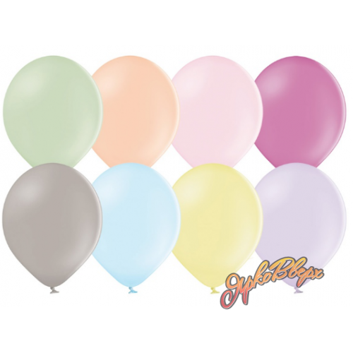 В упаковке 50 штук. Одноцветный высококачественный шар из натурального латекса. Ассорти из 8 нежных мелованных цветов, одного типа - пастель - матовый оттенок цвета. Модные цвета MACARON: В 105/437 Пастель Экстра Cyclamen Rose; В 105/440 Пастель Экстра Warm Grey; В 105/449 Пастель Экстра Ice Blue; В 105/450 Пастель Экстра Lemon; В 105/451 Пастель Экстра Lilac Breeze; В 105/452 Пастель Экстра Kiwi Cream; В 105/453 Пастель Экстра Peach Cream; В 105/454 Пастель Экстра Soft Pink. Пудровая пастель. Шар Belbal – прекрасно подходит для розничной продажи, оформлений и рекламной печати. Шар способен долго удерживать гелий, что делает его лидером по длительности полета среди шаров других производителей. Идеален в букетах, за счет гармоничной, круглой формы. Шары Belbal имеют сертификат Intertek Tickmark, который гарантирует их безопасность. Изготавливаются из экологически безопасного 100%-ного натурального латекса. В окружающей среде разлагаются на безопасные компоненты примерно с той-же скоростью, как обычные листья деревьев.