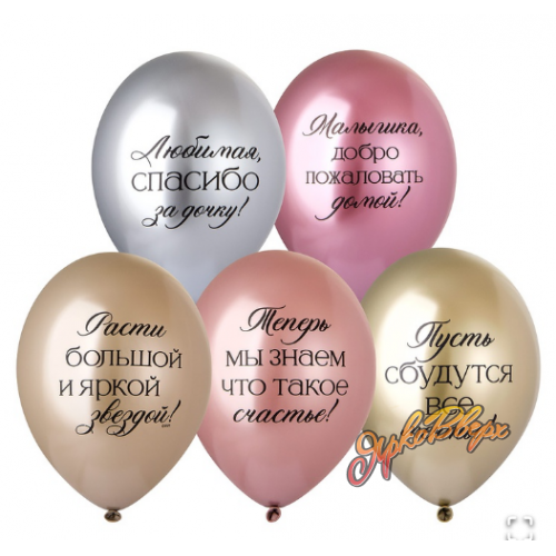 В упаковке 25 штук. Коллекция высококачественных шаров Belbal, созданных из 100% натурального латекса. Эти зеркальные хромированные шары станут не только стильным украшением, но и трогательным посланием. Для самых дорогих и любимых: "Любимая, спасибо за дочку!" – искренние слова благодарности и любви. "Пусть сбудутся все мечты!" – пожелание счастья и исполнения желаний. "Теперь мы знаем, что такое счастье!" – отражение безграничной радости от появления малышки. "Малышка, добро пожаловать домой!" – нежное приветствие новорожденной. "Расти большой и яркой звездой!" – пожелание светлого будущего. Эти шары идеально подойдут для поздравления с рождением девочки, добавляя празднику особую теплоту и индивидуальность.