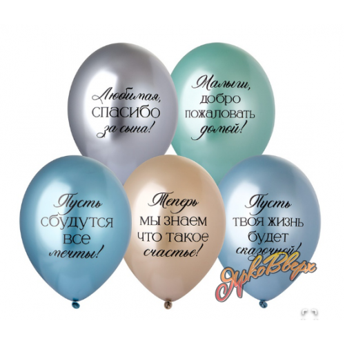 В упаковке 25 штук. Коллекция высококачественных шаров Belbal из натурального латекса, созданных специально для самых трогательных моментов. Эти великолепные хромированные шары станут настоящим украшением любого праздника. Их зеркальная поверхность отражает свет и создает ощущение волшебства, а двусторонняя шелкография несет в себе самые теплые и нежные слова: "Любимая, спасибо за сына." – Идеальное признание для молодой мамы. "Пусть сбудутся все мечты." – Пожелание безграничного счастья для малыша. "Теперь мы знаем что такое счастье!" – Слова, полные нежности и родительской любви. "Малыш, добро пожаловать домой!" – Встречайте новое чудо с особым трепетом. "Пусть твоя жизнь будет сказочной!" – Пожелание волшебного детства. Эти шары – прекрасный способ поздравить с рождением мальчика, выразив всю глубину вашей радости и любви.